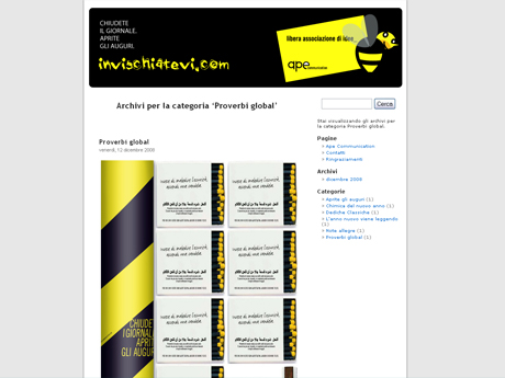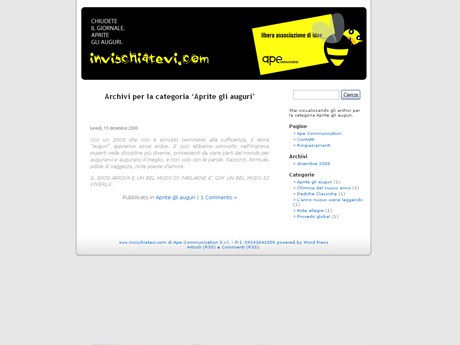 www.invischiatevi.comCon un 2008 che non è arrivato nemmeno alla sufficienza, il tema “auguri” apprariva assai arduo. E cosi abbiamo coinvolto nell’impresa esperti nelle discipline più diverse, provenienti da varie parti del mondo per augurarvi e augurarci il meglio, e non solo con le parole. Racconti, formule, pillole di saggezza, note poesie d’amore.